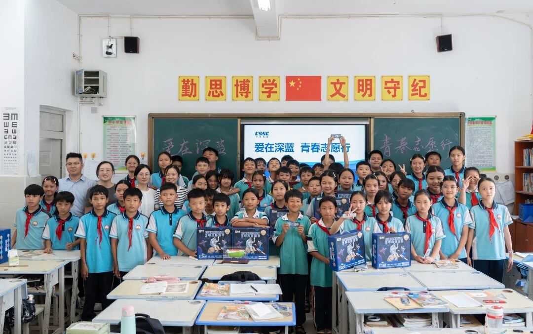 沪东中华携手七〇八所、黄埔文冲、六〇五院、广州公司、深圳海科、广船国际等单位团组织赴云南鹤庆县,向龙开口镇金河小学的孩子们捐赠上百套学习用品和文创。