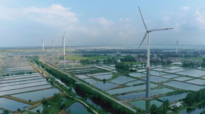 中国海装将高塔筒风电机组安装在田埂上,不仅不会占用耕地,同时更不会影响农业生产。有研究测算,开发1亿千瓦风电装机需用地12万平方米,即180亩,相当于十几个足球场的大小,而风机安装在田埂上,不仅不占用耕地,同样也能产生可观的发电量。同时风电场的建设除机组本身之外,还需部分配套设施完善,如道路、桥梁的建设,这可对推动乡村交通的发展,助推乡村振兴。除此之外,“风机+农田”的组合能吸引观光游客、摄影爱好者,能成为促进当地旅游经济振兴的方式之一,进一步实现旅游富民。