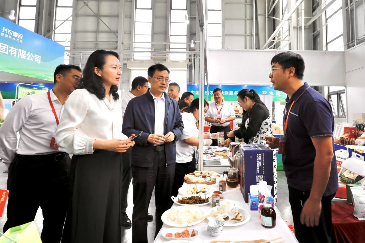国务院国资委秘书长庄树新、国务院国资委社会责任局局长李军、农业农村部区域协作促进司(革命老区工作办公室)司长(主任)李富君等领导来到中船集团展区,询问了解集团公司定点帮扶的进展情况及特色农产品相关信息。