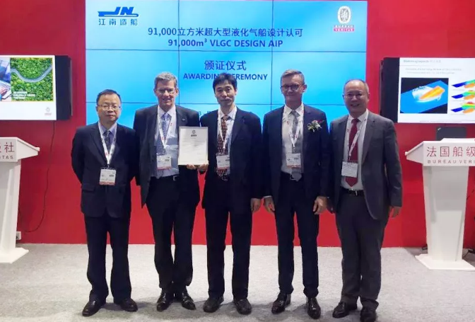 海事展首日,中国船舶集团所属江南造船(集团)有限责任公司新开发的技术“SFONE”获美国船级社AiP证书,新一代VLGC-PANDA 91T获得法国船级社的AiP证书。 SFONE(额外的1%装载率)是一项针对液化气船装载的特殊技术。江南已经获得了中国国家专利局颁发的发明专利证书。新一代VLGC-PANDA 91T在之前已经获得了ABS和LR的AiP证书,PANDA 91T目前也已获得三家著名船级社的AiP证书。