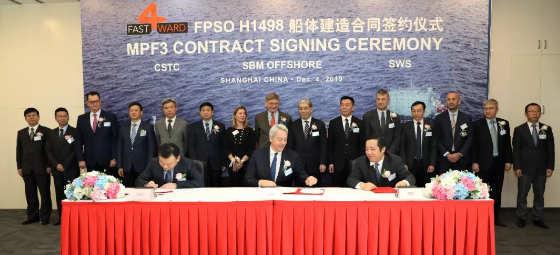 12月4日,中国船舶集团有限公司所属上海外高桥造船有限公司与SBM OffSHORE公司SBM Fast4ward FPSO船体系列项目第三艘船体合同签约仪式在上海举行。中国船舶集团董事长雷凡培出席签约仪式,并与SBM公司首席执行官Bruno Chabas进行会谈。双方就进一步加强交流沟通、扩大项目合作进行了深入探讨并达成广泛共识。中国船舶集团副总经理孙伟、SBM公司执行董事Bernard Van Leggelo参加上述活动。