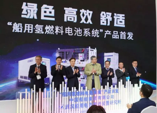 12月3日,中国船舶集团在海事展上举行“船用氢燃料电池系统产品发布会”,推出由中国船舶集团七一二所研发的500千瓦级船用燃料电池系统,并计划在内河开展实船示范应用。这也是国内首台船用氢燃料电池系统。