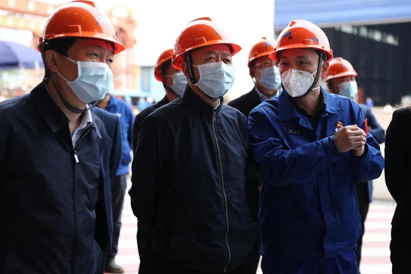 王江平一行深入车间实地考察了重点在制产品生产情况,认真听取了武船集团积极参与疫情防控、有序推进复工复产和疫情影响等方面的情况汇报。