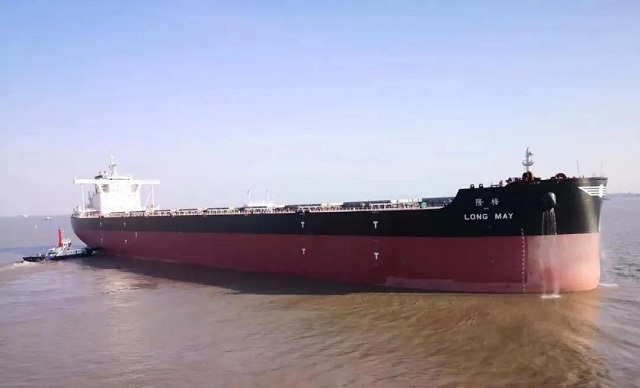 4月23日,中国船舶集团旗下外高桥造船为美国福茂集团建造的21万吨散货船“隆梅”号签字交付。“隆梅”号长299.88米,型宽50米,型深25.2米,设计吃水16.1米,满足国际海事组织(IMO)TIER III 排放标准和散货船、油船协调共同结构规范(HCSR),并安装了脱硫装置,入级美国船级社。