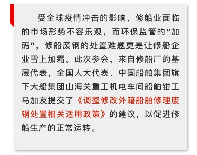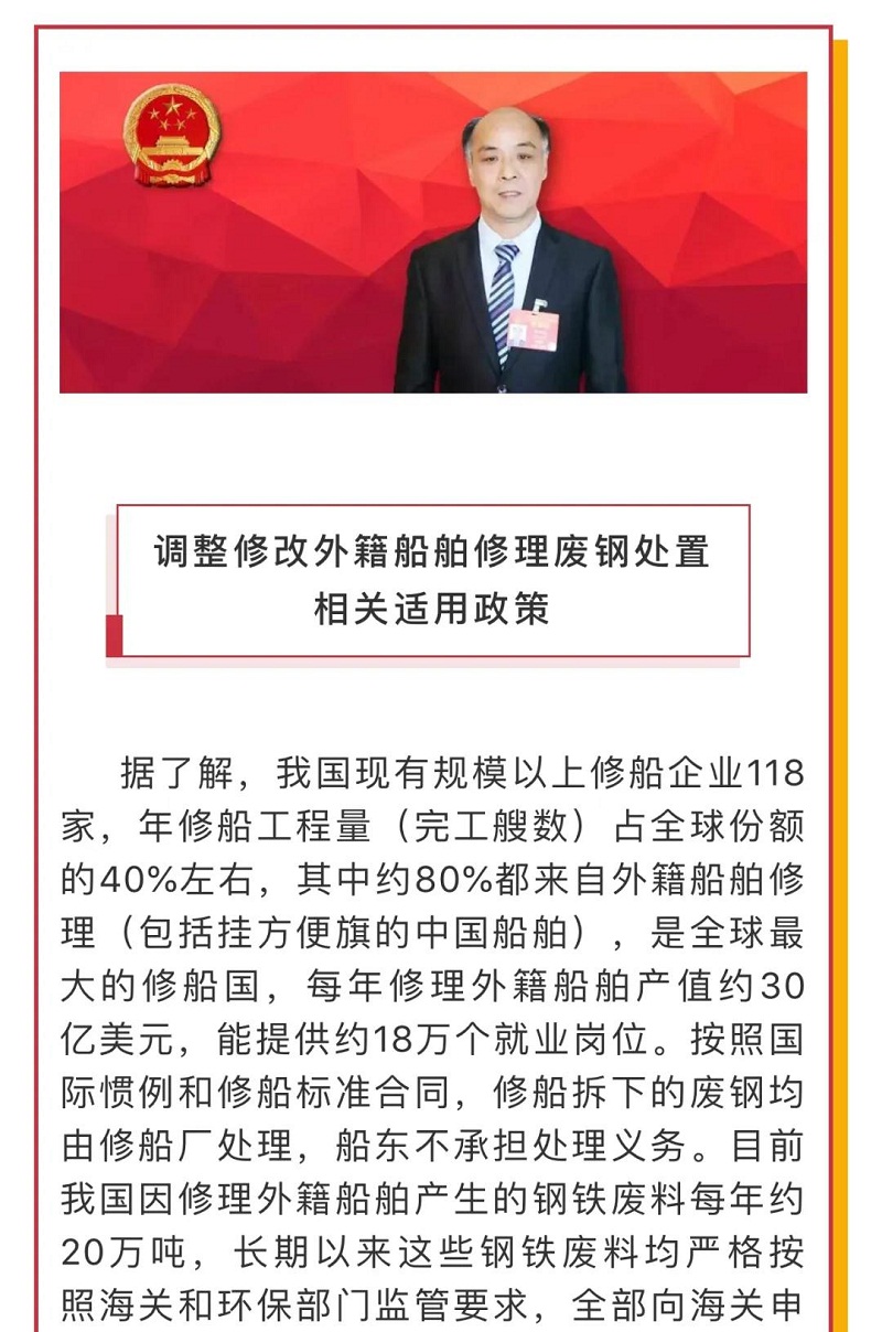 船舶看两会|全国人大代表马加友:修船废钢政策调整势在必行!
