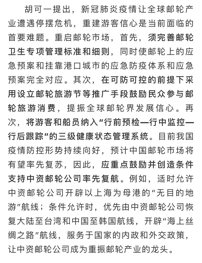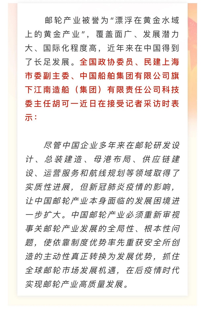 船舶看两会| 全国政协委员胡可一:审视根本性问题,推动邮轮业高质量发展
