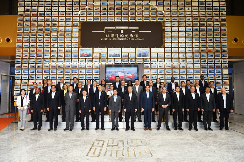 使节代表团先后参观了中国船舶集团旗下沪东中华、江南造船,听取了两家企业重点产品、经营生产发展的总体介绍,并赴船坞、码头实地了解了在建的目前全球最大双燃料23000TEU集装箱船以及其他高技术、高附加值船舶建造情况。