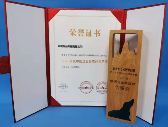 12月22日,由国务院国资委新闻中心、中央企业媒体联盟联合主办的2020第八届中国企业新媒体年会在北京举行。本届年会主题聚焦“融时代 · 新传播”,中国船舶集团有限公司因在“奋斗者”号融媒体报道中的创新表现,荣获“2020年度中国企业新媒体创新奖”。