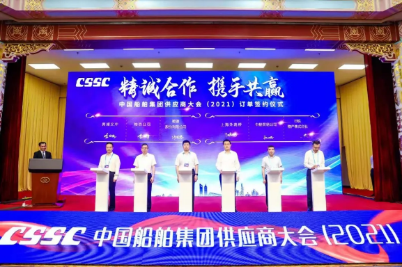 会上,中国船舶集团旗下成员单位分别与鞍钢股份有限公司、山西太钢不锈钢股份有限公司、日铁物产株式会社等供应商进行了签约,并为120多家金牌供应商颁发了证书。