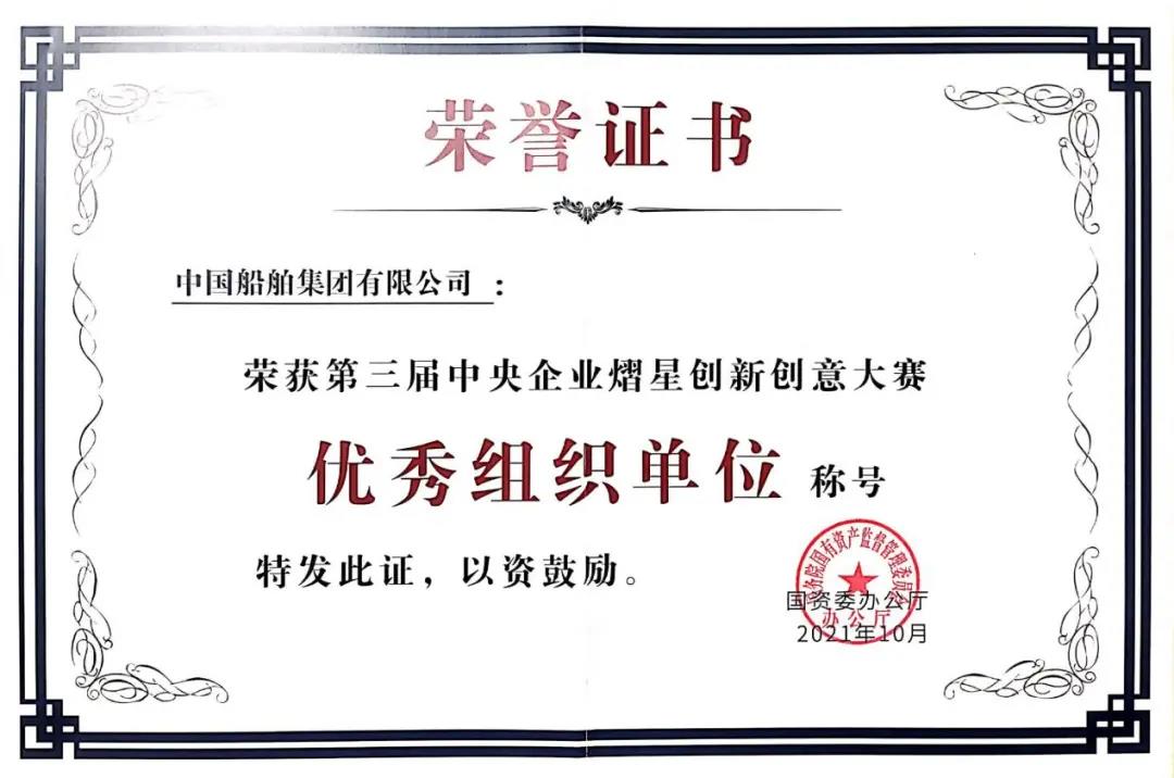 10月25日,第三届中央企业熠星创新创意大赛总结颁奖活动在京举行,中国船舶集团党组副书记、总经理杨金成参加颁奖活动,并代表集团公司获授优秀组织单位称号。