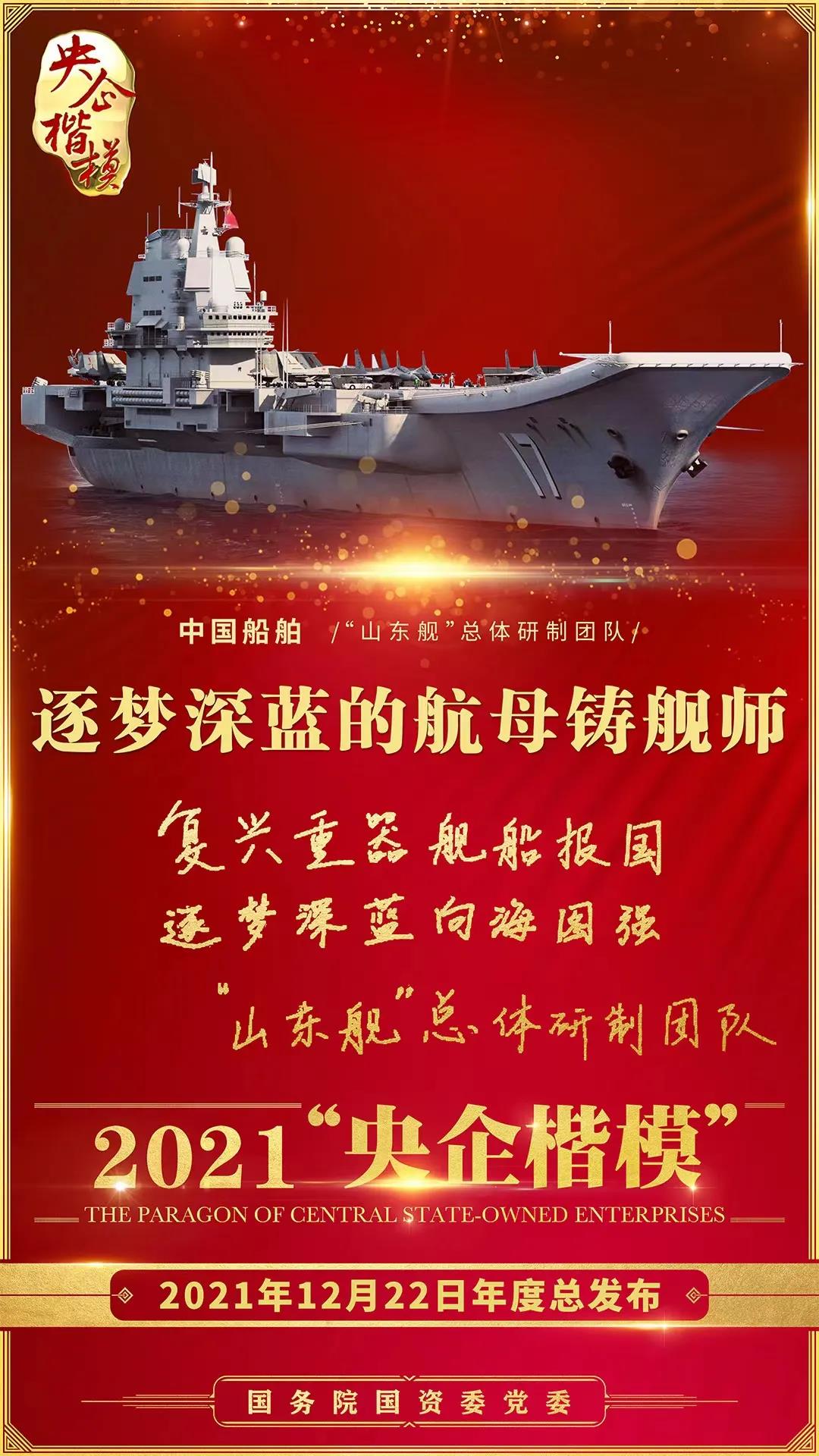 12月22日,国务院国资委党委举行2021年第二批“央企楷模”发布暨年度总发布仪式,中国船舶“山东舰”总体研制团队荣获2021年“央企楷模”荣誉称号。继“奋斗者”号万米载人潜水器研发团队获评2020年“央企楷模”荣誉称号后,中国船舶集团再获此殊荣。