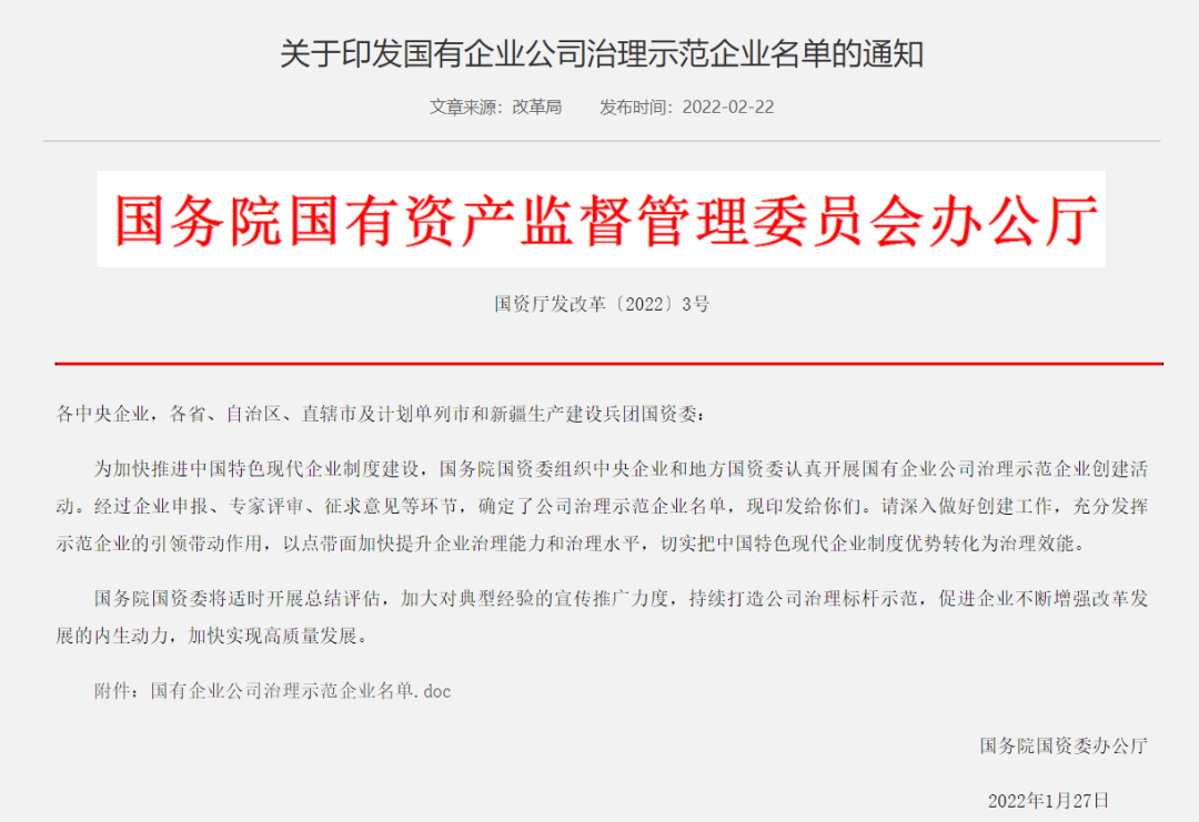 日前,国务院国资委印发国有企业公司治理示范企业名单,中国船舶集团有限公司榜上有名。