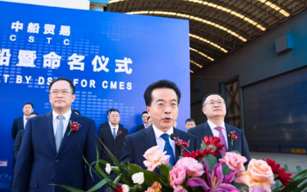 9月24日,中国船舶集团旗下大船集团联合中船贸易为招商局集团旗下招商轮船建造的30万吨VLCC “新伊敦”轮正式命名交付。同日,大船集团联合中船贸易成功承接了招商轮船2艘17.5万立方米大型LNG运输船新造项目。中国船舶集团党组副书记、总经理杨金成,党组成员、副总经理孙伟,招商局集团党委书记、董事长缪建民,党委副书记、总经理胡建华,纪委书记、董事段湘晖,党委委员、副总经理李百安出席仪式。缪建民为新船命名,杨金成、胡建华在仪式上致辞,段湘晖为新船砍缆。