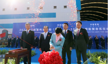 招商局集团党委书记、董事长缪建民为新船命名