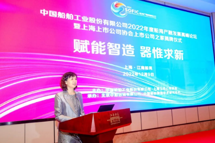 12月9日,中国船舶工业股份有限公司2022年度船海产融发展高峰论坛暨上海上市公司协会上市公司之家揭牌仪式在上海举行。论坛旨在搭建产业与金融交流合作平台,聚合船舶工业产业头部资源,洞悉行业赛道一线信息,深化金融助力实体经济发展,推动行业创新驱动。中国船舶集团党组成员、总会计师贾海英,上海上市公司协会会长、上港集团党委书记、董事长顾金山出席论坛并致辞。中国船舶集团党组成员、副总经理,中国船舶股份董事长盛纪纲发表主旨演讲。