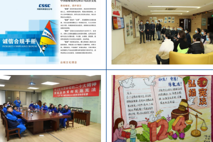 风帆公司、综合院等单位发布合规手册,组织签署合规承诺和合规考试;中船澄西、投资公司、七一一所、七二六所等单位精心制作并设置宪法宣传展板;江南造船、中船九院等单位开展宪法法律知识问答,实现以考促学;广州公司持续开展“送法进校园”宪法宣传活动,将法治学习延伸到所属技校、幼儿园;七一〇所、七一五所等单位开展法律咨询志愿服务活动,对外树立良好的“法治形象”;驻香港企业中船资本、中船租赁大力宣传宪法及香港基本法、香港国安法,提升员工宪法法治意识。