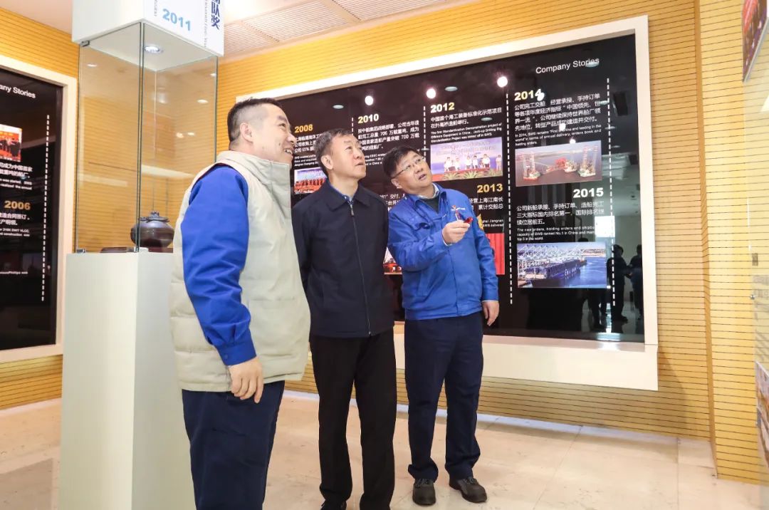 在外高桥造船展厅,温刚听取了外高桥造船发展历程、战略定位和主建产品等内容的汇报。在国产大型邮轮首制船建设现场,温刚听取了建造进度汇报,并安排部署下一步工作。座谈会上,温刚听取了外高桥造船高质量发展战略、生产经营情况及党建重点特色工作的汇报。