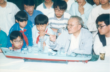 潘镜芙1996年在浦南中学为学生们讲舰船