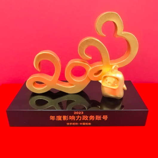 2023年,中国船舶集团微信公众号、微博、抖音、视频号、快手、头条号等新媒体平台加快推进融合发展,通过文字、影音、媒体融合等形式,全方位、多角度报道了集团公司的重大工程、重要活动、重点项目、优秀成果和先进典型等,进一步讲好中国船舶故事,更好地展示中国船舶品牌形象,并取得了可喜的成绩。2023年,“中国船舶”微博荣登“全国十大国资央企微博”榜单,位列第八;“中国船舶”抖音播放量突破一亿,在热点事件回应中作出突出贡献;“中国船舶”快手获评“2023年度影响力政务账号”。