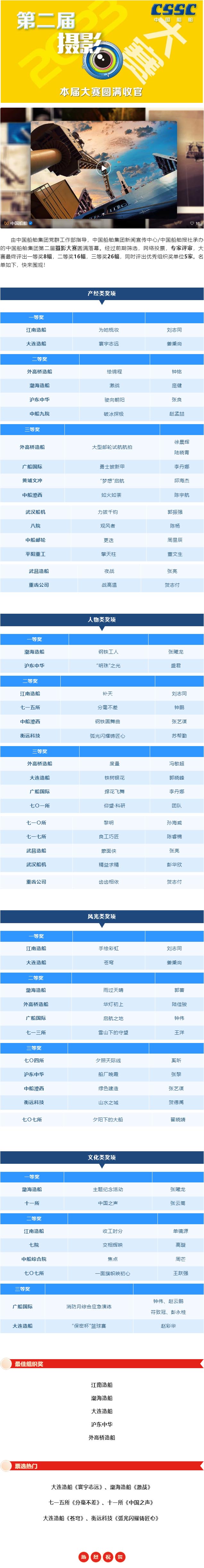 中国船舶集团第二届摄影大赛结果出炉!