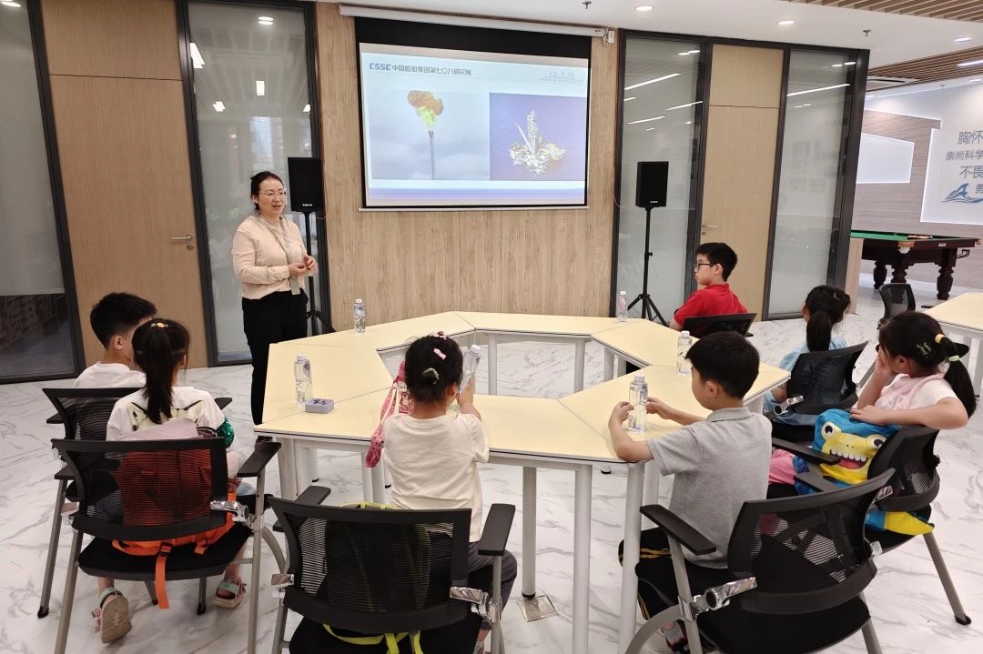 通过“国之重器”模型展示讲解,积极联动“爱在深蓝”船舶青年优秀志愿者讲授“国之重器”的由来,孩子们感悟到船舶科技的魅力,也对我国船舶工业成就有了直观生动的认识。