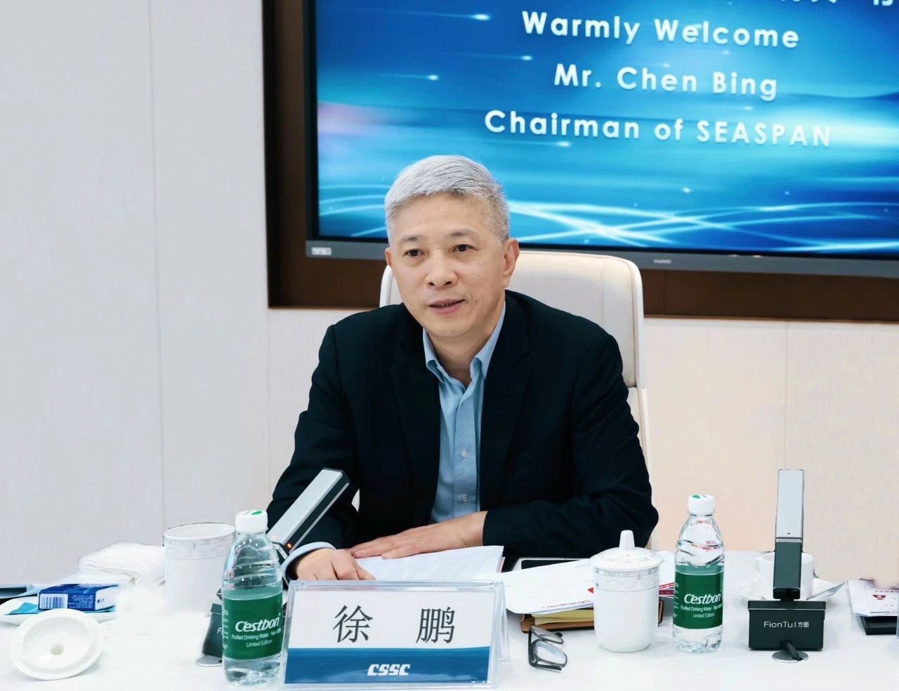 徐鹏对陈兵一行的来访表示欢迎,并感谢Seaspan公司对中船集团的长期信任与支持。徐鹏表示,中船集团将持续提升自身综合能力,努力为客户提供更优质的产品和服务。Seaspan公司是全球最大的独立集装箱船租赁船东公司,与中船集团在长期合作中结下了深厚友谊。未来,希望双方建立常态化沟通交流机制,在船舶建造与升级改造、国际船海市场拓展、船舶全生命周期运维、绿色能源开发等方面持续深化进一步合作,共同为行业持续健康发展作出应有贡献。