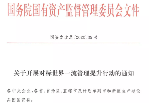 近日,国务院国资委启动国有重点企业对标世界一流管理提升行动,对加强管理体系和管理能力建设作出了部署安排。各企业认真落实国资委会议要求,迅速组织开展对标提升行动。