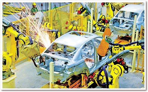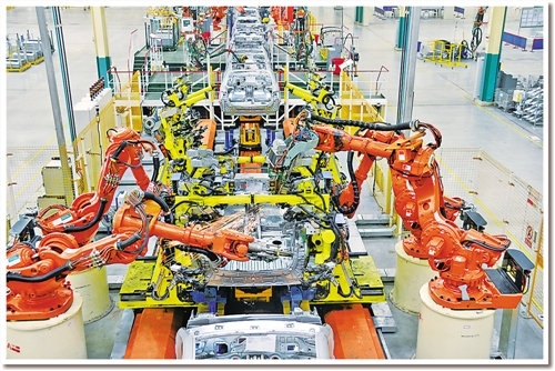 日前,记者在东风汽车公司旗下神龙汽车公司成都工厂焊装车间看到,占地面积约10个足球场的车间俨然就是一个“机器人王国”:442台各种机器人都在忙碌着,所有点焊、弧焊、激光焊、螺柱焊、涂胶、包边、铆接、部件搬运等“重活、累活”全部由机器人自动完成。焊装分厂厂长孙继胜介绍说,除442台机器人外,车间还有另外一个“撒手锏”��六面体转台设备。“原来生产1个车型要建6条生产线,现在1条生产线就可以生产6种车型。”孙继胜说。