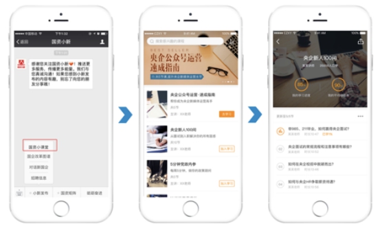 “国资小新”上线五年来,基于对粉丝需求的深度了解,先后设立了“微招聘”、“毕业去哪儿”、“新思”、“小新荐书”等栏目,并尝试语音知识分享,为包括国企员工在内的广大粉丝提供招聘求职信息、分享企业管理经验、解读国企改革发展的政策和形式,帮助粉丝实现更好的职业规划和发展。近期推出的“小新微课”,是“国资小新”结合最新技术手段、在这一领域的又一尝试,课程免费,立足公益,为粉丝竭诚服务,旨在提供更具权威性、普遍性、专业性的职业发展服务。
