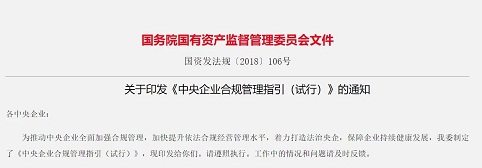 中央企业合规管理指引(试行)