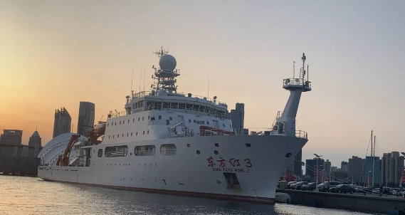 “东方红3”号是我国自主创新研发的新一代深海大洋综合科学考察实习船,2013年由教育部立项建设,2019年6月交付使用,是国内首艘、国际上第四艘获得DNV GL签发的船舶水下辐射噪声最高等级——静音科考级(SILENT-R)证书的海洋综合科考船,也是世界上获得这一等级证书排水量最大的海洋综合科考船。