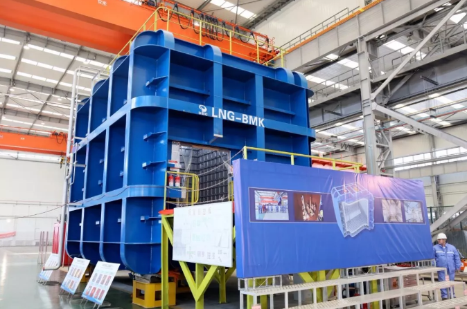 11月26日,中国船舶集团所属大连船舶重工集团有限公司举行“薄膜型液化天然气运输船技术研究”科研专项MarkⅢ型液化天然气船全封闭模拟舱建造完工暨GTT和船级社颁证仪式。