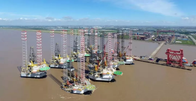 上海外高桥造船建造的两座海上自升式钻井平台交付运营