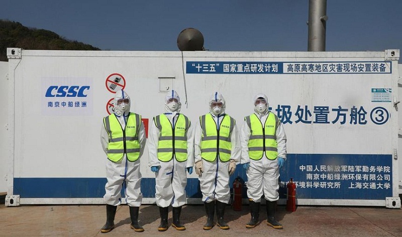 新冠肺炎疫情爆发后,中船绿洲联合其他单位研制的移动式医疗垃圾处置方舱及自主研制的医疗垃圾焚烧炉火速发往武汉,缓解了战“疫”一线医疗废物处置压力。