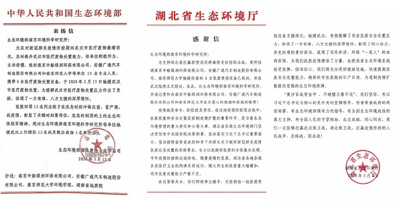 近日,国家生态环境部、湖北省生态环境厅分别发出表扬信和感谢信,对中国船舶集团所属中船绿洲等在疫情防控期间作出贡献的单位给予高度赞扬,表示衷心的感谢,并对包含中船绿洲旗下环保公司陈纪赛、陈良义、王小峰、周浩在内的13名生态环境“铁军”提出表扬。