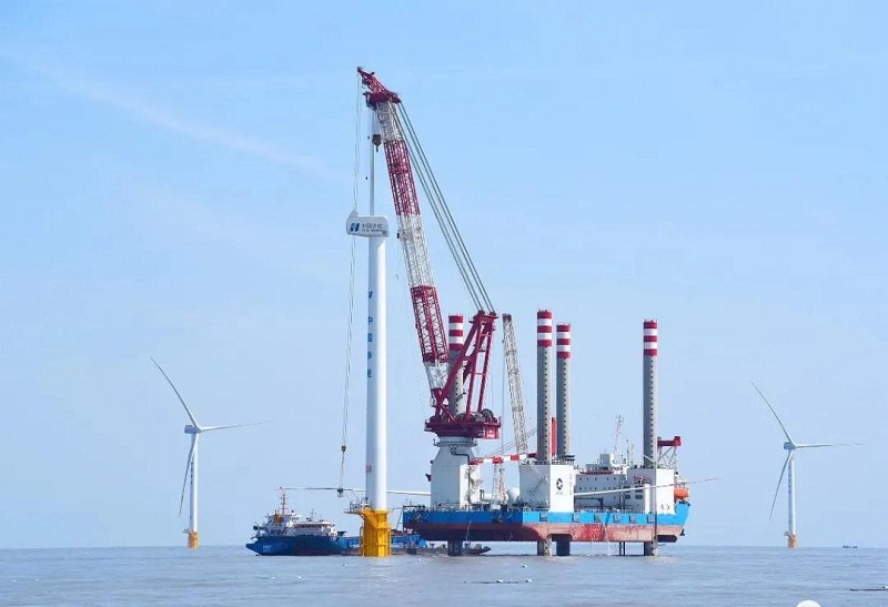 本次安装难度大,30号风机单叶片长73.5米,旋转直径达158米,轮毂高度81米。塔筒共分为底、中、顶三段,风机整体总重量790吨以上,相当于500余辆小汽车的重量。“振江号”平台安装3台1800千瓦电力推进全回转舵桨,配备3台750千瓦艏侧推装置。航速7节,续航能力达3000海里,定员100人,平台最大作业水深50米,甲板作业面积约2500平方米,可容纳3套6兆瓦级风机或2套8兆瓦级风机,并且可以独立完成6兆瓦、8兆瓦级风机的安装和其他水上工程施工的起重、打桩、吊装和运输等作业。