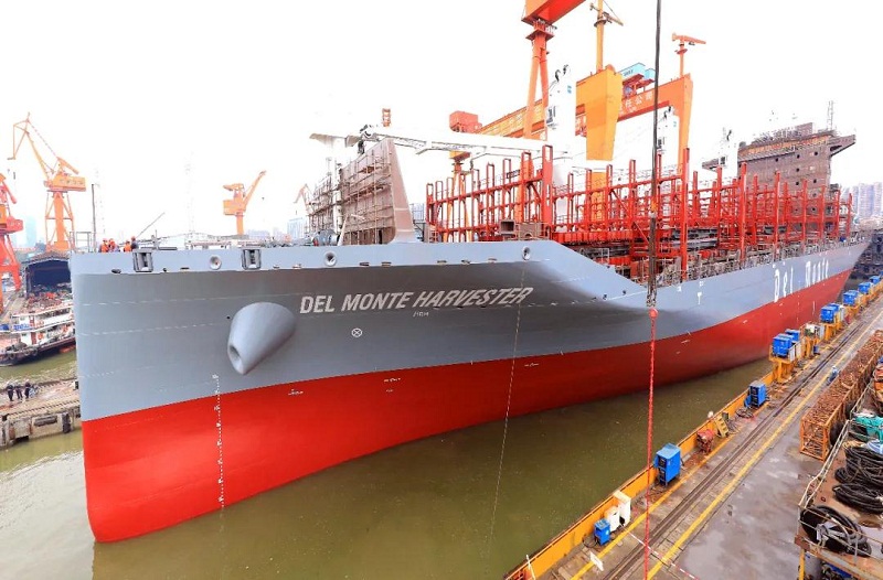 黄埔文冲建造的600FEU系列全冷藏集装箱船3号船顺利出坞