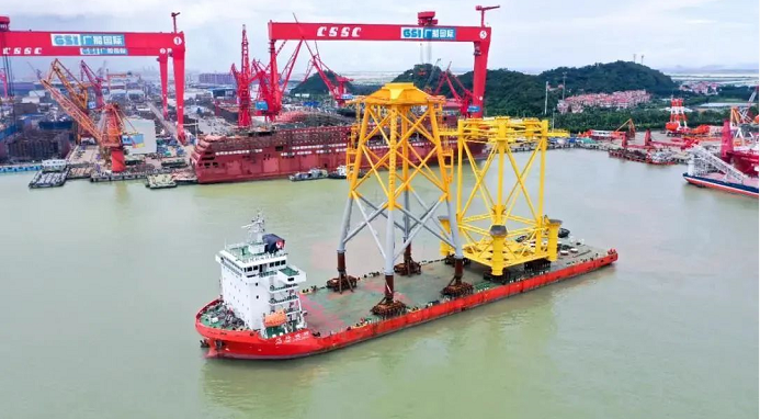 日前,由中国船舶集团旗下广船国际承建的广东阳江南鹏岛300兆瓦海上风电项目首套导管架及辅助平台顺利交运。这是广船国际承建并交运的首批首个风电导管架,也是目前国内最大的风电导管架,标志着广船国际在风电业务领域实现了经营、生产、交付全环节突破,对后续承接风电项目业务、拓展风电市场具有重要意义。