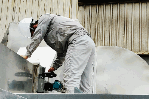 八院海博威集团海通公司环保工程师,正为沪东中华VOCs废气治理项目设备进行调试。