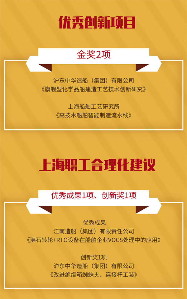 中国船舶集团上海船舶系统共19项职工创新成果,在第32届上海市优秀发明选拔赛等各项赛事中斩获佳绩。
