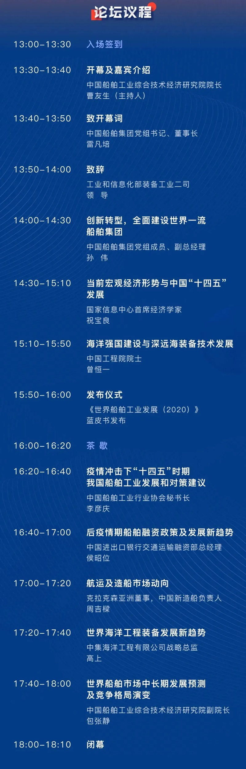 中国船舶集团肩负“引领行业发展、支撑国防建设、服务国家战略”的使命,正全力建设世界一流船舶集团,我们诚邀行业同仁莅临中国船舶工业发展高峰论坛(2020),齐聚一堂交流讨论,共同应对挑战,携手推动船舶工业高质量发展。