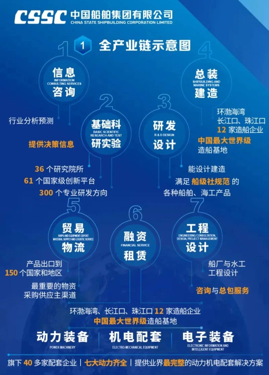 船舶海工装备产业展区 分为船舶与海洋工程、船舶配套2个大区,整体展示了中国船舶集团强大的船舶建造能力。船舶与海洋工程分为海洋运输与工程装备,海洋资源开发、海洋科考装备,海洋渔业,新开发船型与船舶改装等六大板块;船舶配套区包括动力与配套、机电装备和电子信息装备3大部分,共展出模型及实物68个,重点聚焦自主品牌、系列化产品及国际领先产品,展示了中国船舶集团在业界最为完整齐全的船舶动力机电配套产业链,具备提供稳定、可靠的全动力和配套解决方案的能力。