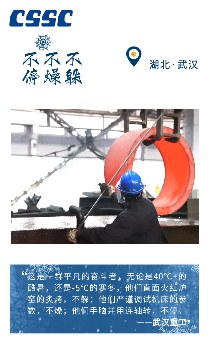 晨光熹微中启程 夜色如墨时坚守 从北至南 这群奋进的船舶人 将冬日热血洒在祖国大地 谱写了一曲昂扬的劳动者之歌