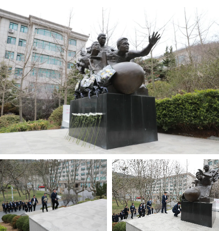 清明将至,翠柏凝春。4月2日上午9时,中国船舶集团七六〇所在所区内举行了庄重的抗灾抢险英烈祭奠活动,在烈士雕像前敬献鲜花并默哀。