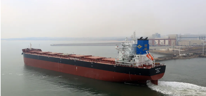 4月8日,大船集团山船重工为挪威Frontline公司建造的8.2万吨散货船“GOLDEN FAST”号正式签字交付,该船是8艘系列船中的第7艘船舶。