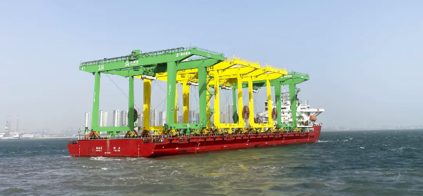 近日,武汉船机海西重机公司为天津港北疆港区C段智能化集装箱码头一期工程承制的第五批4台自动化轨道吊滚装发往天津港。