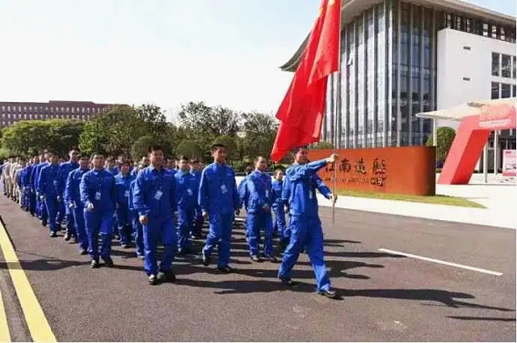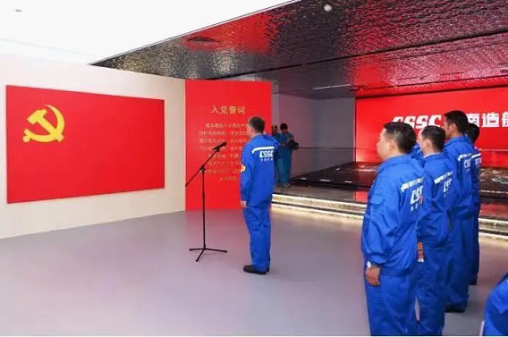 在庆祝中国共产党成立100周年之际,100名来自中国船舶集团的产业工人新党员在江南造船博物馆集中进行了入党宣誓