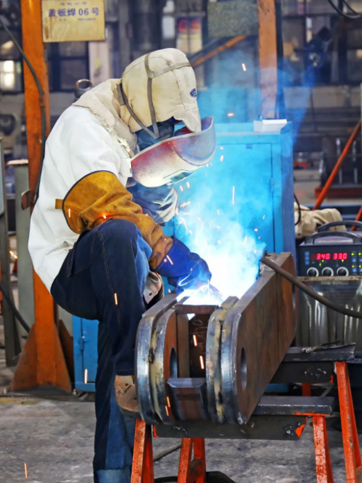 在38℃的高温下,“蒙面焊将”坚守工作岗位,用手中的焊枪把满身的汗水化为激情与焊花一起绽放。