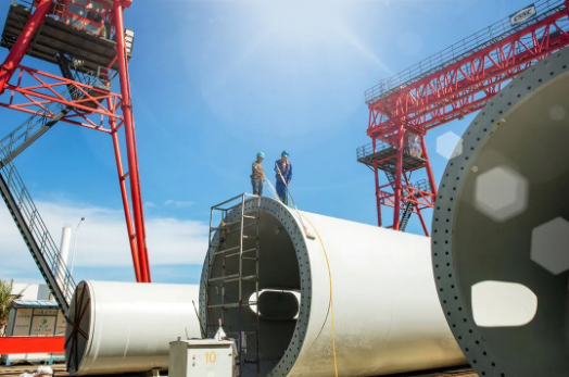 七月,在中国海装大连庄河项目中,火热的盛夏配上火热的抢装,运维人员正在对24号机组做底段塔筒安装前的准备工作。