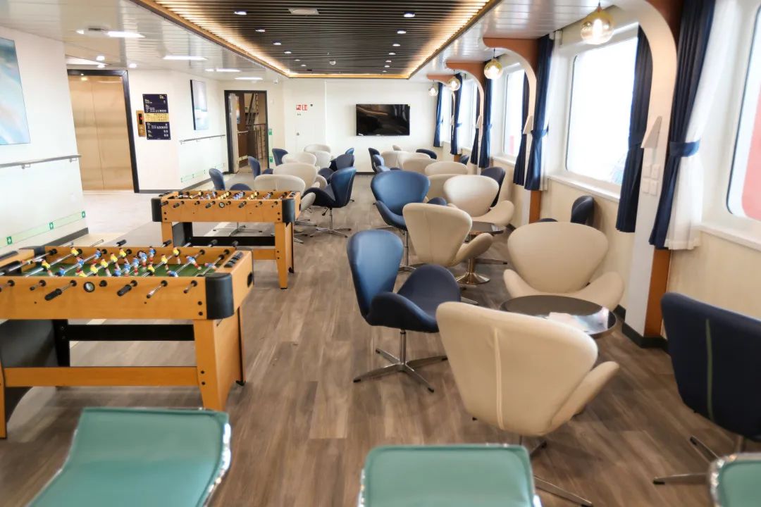 值得注意的是,这艘国内最豪华的客滚船由上海船院负责详细设计,中船九院负责内装艺术设计,其内部装饰材料国产化率达到了95%,船上的一体化智能客运系统同样来自国内自主设计集成,是一艘全部实现国内自主设计、建造,内装及重要系统实现国内配套的豪华客滚船。